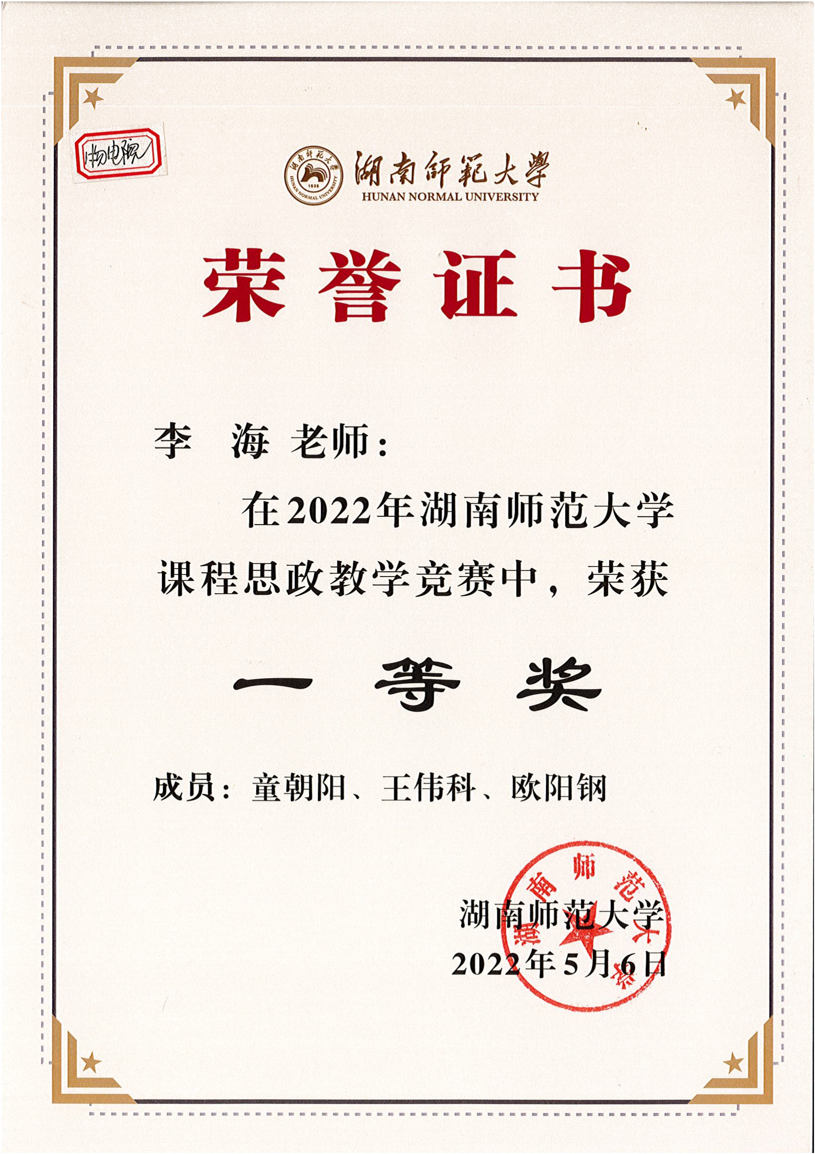 2022年湖南省普通高校教师教学创新大赛获奖