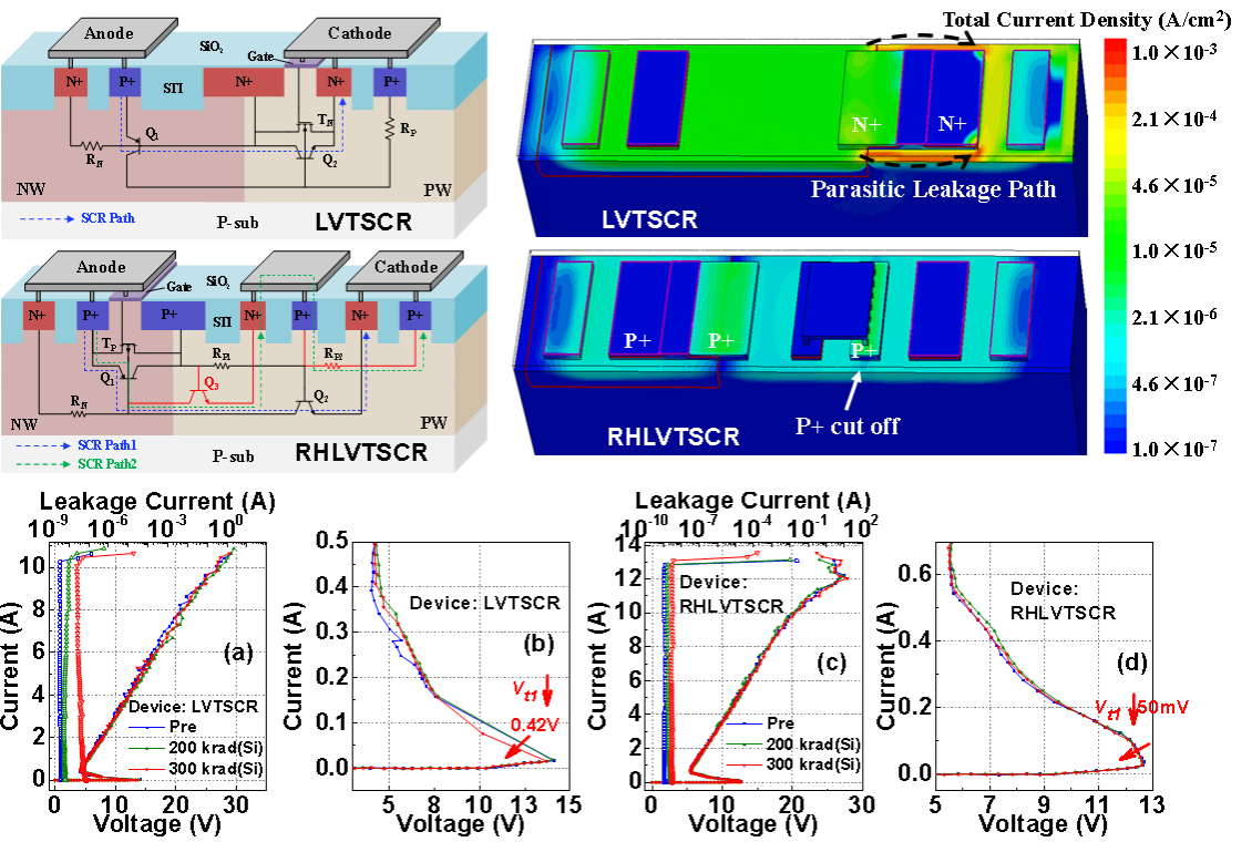 近日,我院金湘亮教授课题组为深空应用在抗辐射静电防护器件设计及应用方面取得新进展,该成果以“A 300 krad(Si) TID Tolerant LVTSCR With nA Leakage and Stable ESD Window”为题在国际权威期刊IEEE Electron Device Letters上发表。近年来,金湘亮教授课题组围绕抗辐射静电防护器件设计及应用开展研究,取得了系列研究成果,先后在国际权威期刊IEEE Electron Device Letters2026, DOI:10.1109/LED.2026.3659707;IEEE Transaction on Electron Devices2025, DOI: 10.1109/TED.2025.3586260;IEEE Transactions on Nuclear Science 2025, DOI: 10.1109/TNS.2025.3533214;IEEE Electron Device Letters2024, DOI: 10.1109/LED.2024.3477452等上发表。