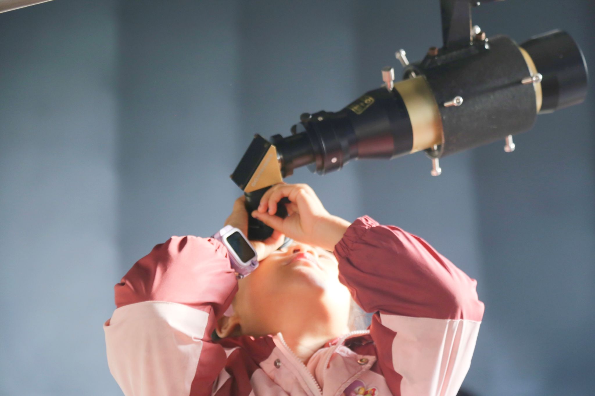 课堂伊始,讲解员以一个富有童趣的天文小视频引入,为小朋友们介绍了土星的大致形象,激发课堂兴趣。随后,讲解员从土星的物理特征、飞行轨迹、环系等方面拓展有关土星的知识讲解,详细描述了土星在宇宙中以怎样的形态与方式存在,为孩子们带来对土星的更加深刻的印象。同时,天文协会组织小朋友们一起绘画出心中的土星形象,培养大家的动手能力和实践能力,激发创造力和想象力。活动的最后一个环节是组织大家使用天文望远镜观测土星,让孩子们在过程中感受宇宙的奥秘。