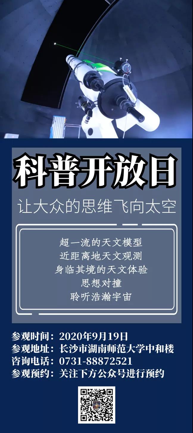 为了响应湖南省科学技术协会关于科普活动的系列开展,为了更好地践行william威廉中文官网天文馆作为省级科普基地的社会职能,william威廉中文官网天文馆于2020年9月19日(上午9点-12点),免费向公众预约开放。