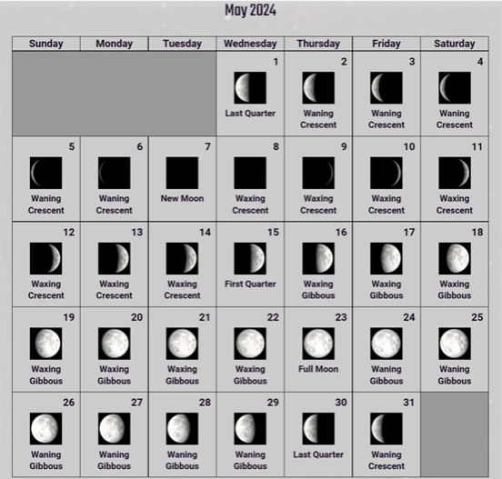 2024年5月5日10:25火星合月(视赤经0h14m35s),地心所见火星在月球以南0.2度的地方,印度洋、东南亚、东亚可见白昼月掩火星。火星由月球亮缘掩入、暗缘复出。这次的白昼月掩火星在国内可以看到,发生在太阳耀眼的白天。