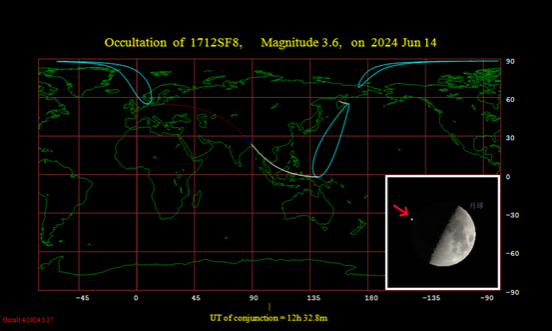 2024年6月14日21点前后,月掩太微右垣一(右执法,室女座β星,3.6等),恒星由月球暗缘掩入。请用小型天文望远镜追踪观测恒星消失现象吧。