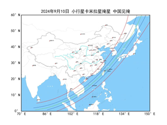 北京时间2024年9月10日(星期二)深夜23时02分左右,推定直径约237公里、0.12角秒,视星等12.65等小行星卡米拉星(107)Camilla掩双鱼座8.90等恒星TYC 0032-00518-1,最长见掩时长25.7秒,减光(亮度下降)3.8等,月球在地平线下。须提前熟悉观测目标,使用指向定位良好的赤道仪,并配合口径20公分(8吋)以上天文望远镜计时观测,误差勿超过0.5秒。海峡两岸(沪浙闽台粤港澳琼)可见。