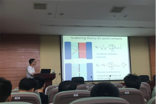 (供稿 物信院)8月18日上午,北京师范大学教授夏钶来我校物信院讲学,在量子楼410报告厅为“多尺度量子效应及其调控”高级研修班学员做了题为《Spin-dependent Transport》的精彩讲座。讲座由物信学院院长唐东升主持。