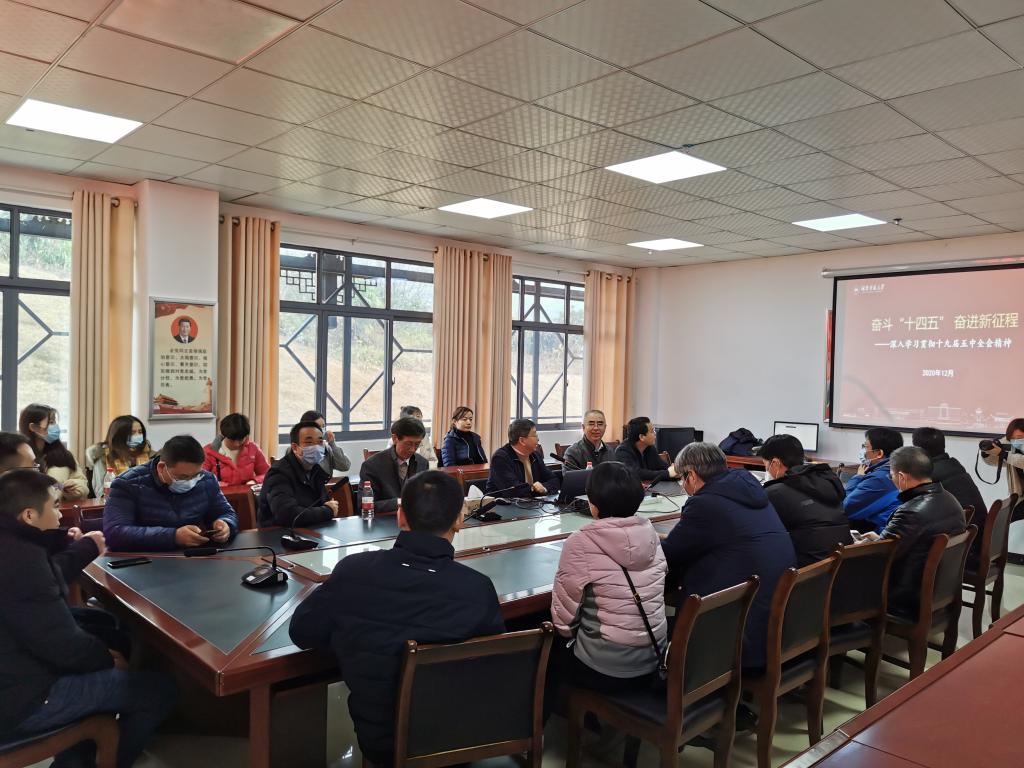 随后,支部在沙洲村党员活动室召开党员大会,匡乐满上了题为“奋斗“十四五”,奋进新征程”的主题党课,带领大家深入学习贯彻党的十九届五中全会精神。党课从“准确把握党的十九届五中全会精神”、“全面理解全会做出的部署安排”、“如何在实践中贯彻全会精神”三方面展开,介绍了全会召开的背景、“十四·五规划”出台及主要内容,号召党员教师坚定理想,勇于创新,勇担责任,坚毅前行。匡乐满指出,物电学院要尽快建立学院的“十四·五”规划,带领党员教师在新形势下弘扬半床被子精神,坚持立德树人,争创一流;要将教育部提出的双万计划、金课建设、教育教学等工作落实做好。支部党员踊跃发言,建言献策。