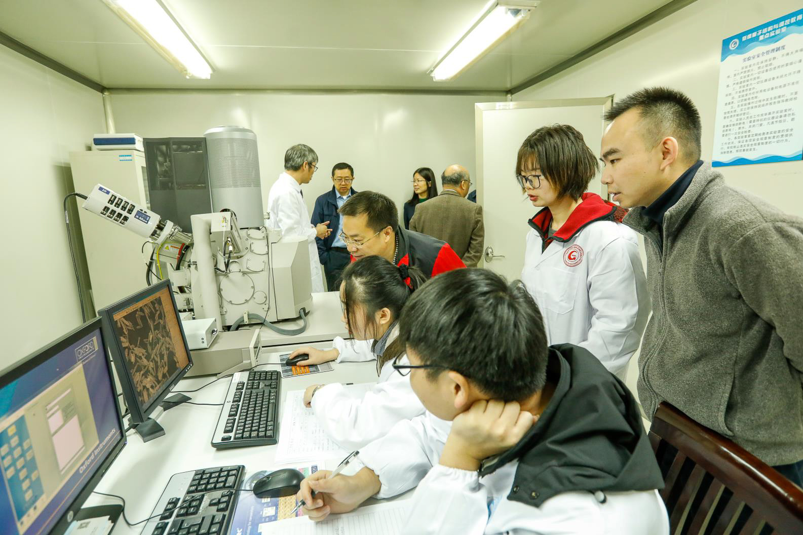 第二阶段,专家组实地走访了量子楼的超导量子实验室、微纳加工与测试实验室、氢能量子催化实验室、多功能成像实验室、教授工作室和研究生自修室、省级科普基地天文馆,查阅核实附件资料,并随机抽取了4名师生进行了个人交流座谈。