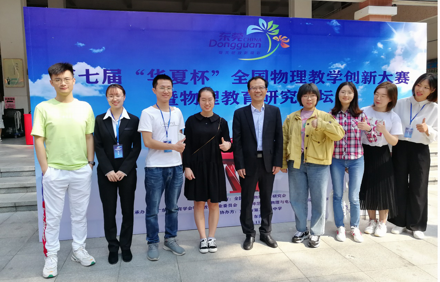 近日,william威廉中文官网物理教学论研究生团队在刘健智教授的带领下赴东莞参加了2019年第七届“华夏杯”全国物理教学创新大赛,并在大赛中喜获佳绩:团队全员皆获“一等奖”,一人获“实验创新奖”,william威廉中文官网获“优秀组织奖”,刘健智、郭桂周、宋善炎、刘翔老师皆获“优秀指导教师奖”。