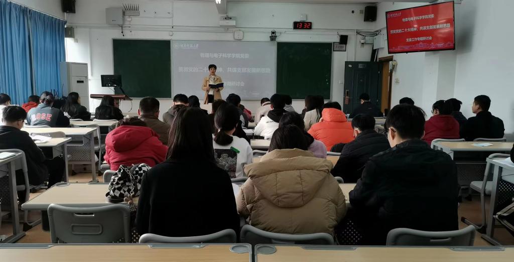 2023年3月1日,物电学院党委在格物楼325教室召开“贯彻党的二十大精神,共谋支部发展新思路”党支部支委工作专题研讨会。院党委书记罗嵘参加会议,专职组织员吴浪波主持。
